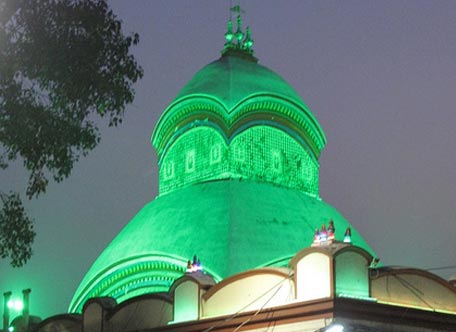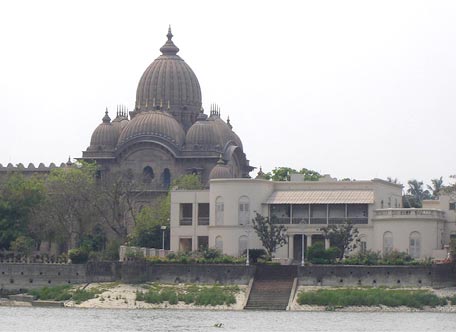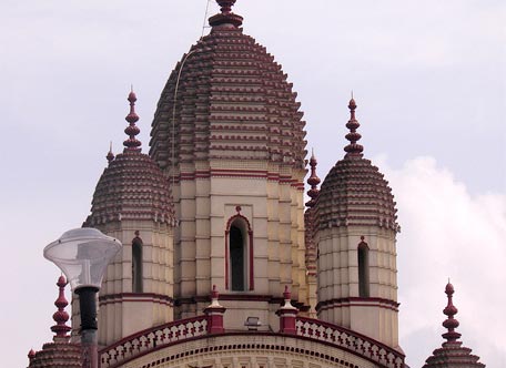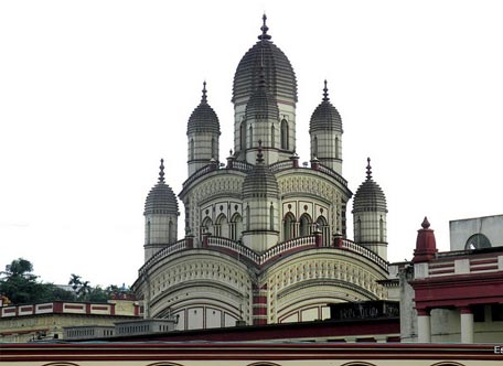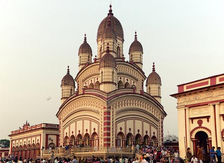 迦梨女神庙位于加尔各答市郊,是为供奉印度教女神迦梨而建。加尔各答的名字就意为"迦梨女神的土地",这位女神在加尔各答拥有众多信徒。迦梨女神是印度教中的黑暗女神、死亡女神,其形象恐怖,性情暴躁嗜血,是印度教创造与毁灭之神湿婆的妻子。据印度教传说,有一天,世界上出现了恶魔,他法力高强,而且每滴一滴血在地上,就会出现一千个和他一样厉害的化身。她恐怕战斗中恶魔流出的血会滴在地上,就先把恶魔的血吸干。恶魔虽然被消灭,但迦梨女神却因为喝了毒血而无法自制,双脚猛力践踏大地。于是湿婆甘愿躺在她脚下,以免伤害众生。因此印度教庙宇中的迦梨女神像,总是踩踏在湿婆的身上。每年的排灯节,迦梨女神庙附近最热闹,有布施咖喱饭的场面。另外,需要提醒游客注意的是,迦梨女神庙的祭祀为血祭,即杀羊取血供奉,场面相当血腥,心理承受能力不足者慎往。
