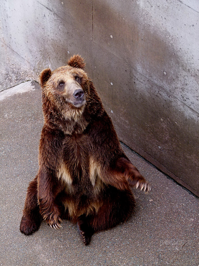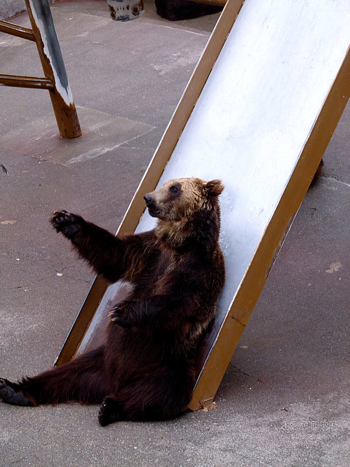 棕熊在野生状态下是没有天敌的,不过,在这些被圈养的熊的眼睛里,我们看到的已经没有凶险的表情了,反而是温顺的、祈求的眼神,也许是长期的驯养扼杀了它们的本性,也难怪它们能被阿伊努族视为宠物哈!